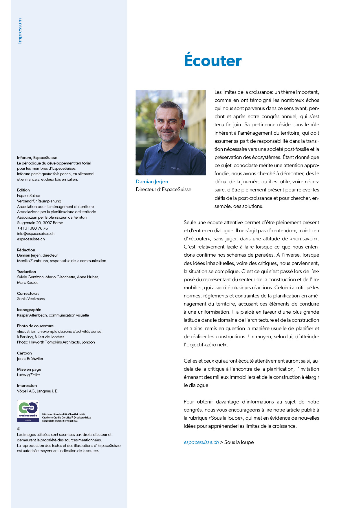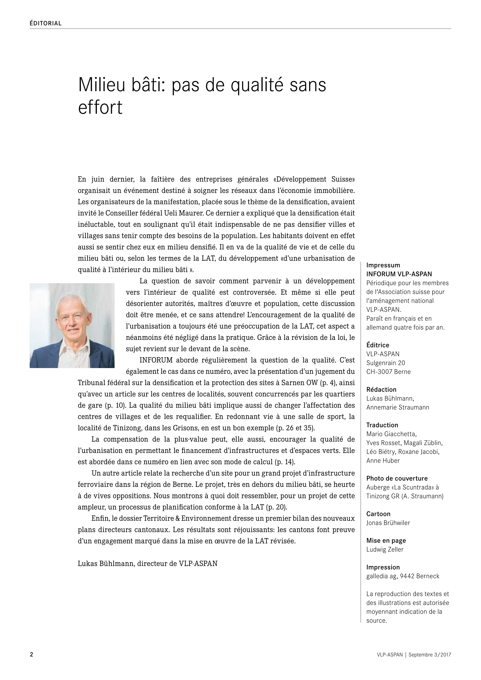 La parole à: Pour Daniel Kolb, aménagiste du canton d’Argovie, une politique foncière active n’est pas l’apanage des grandes communes. Elle permet aussi aux petites communes d’augmenter leur marge de manœuvre.