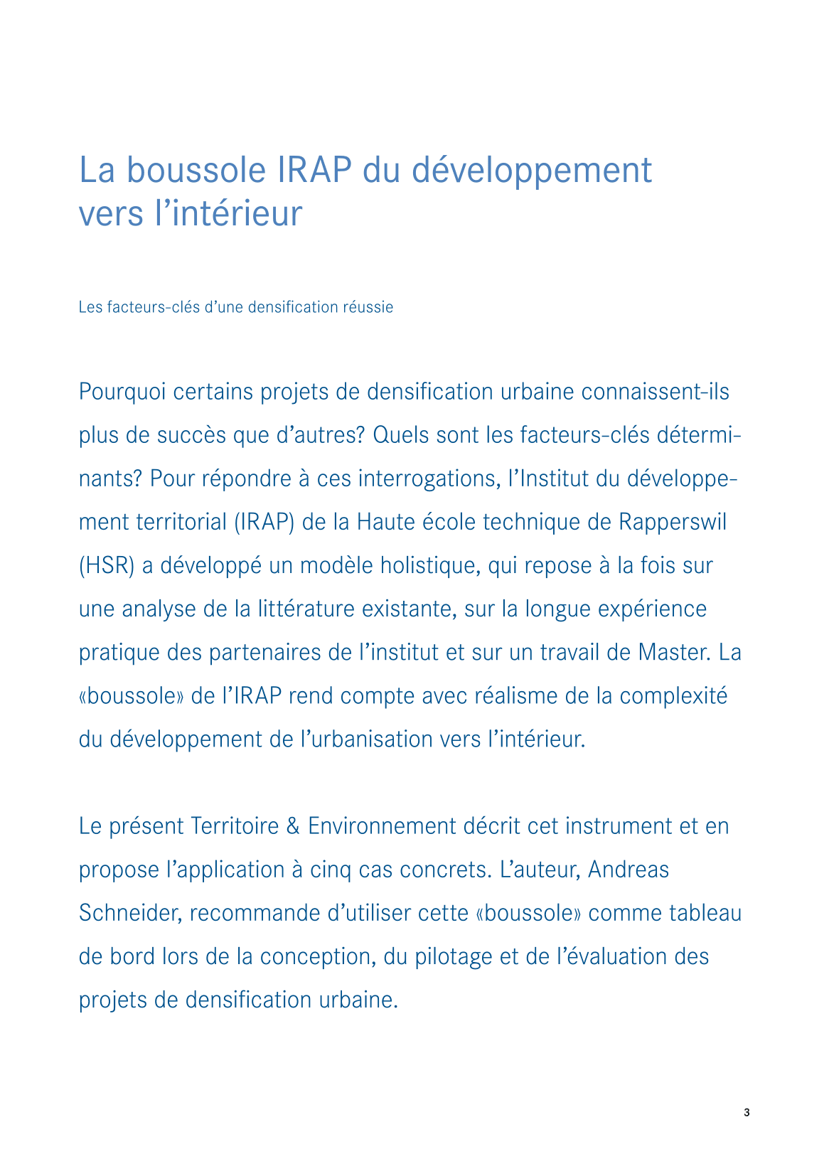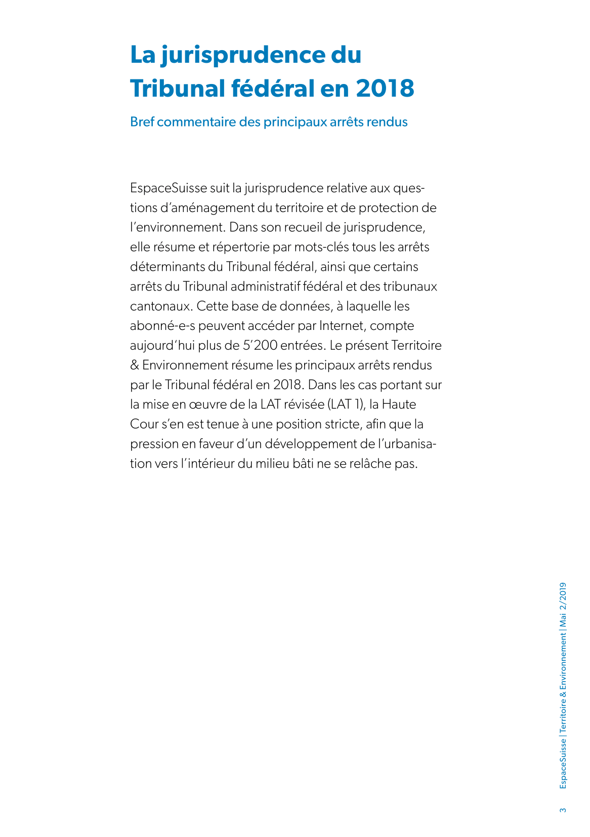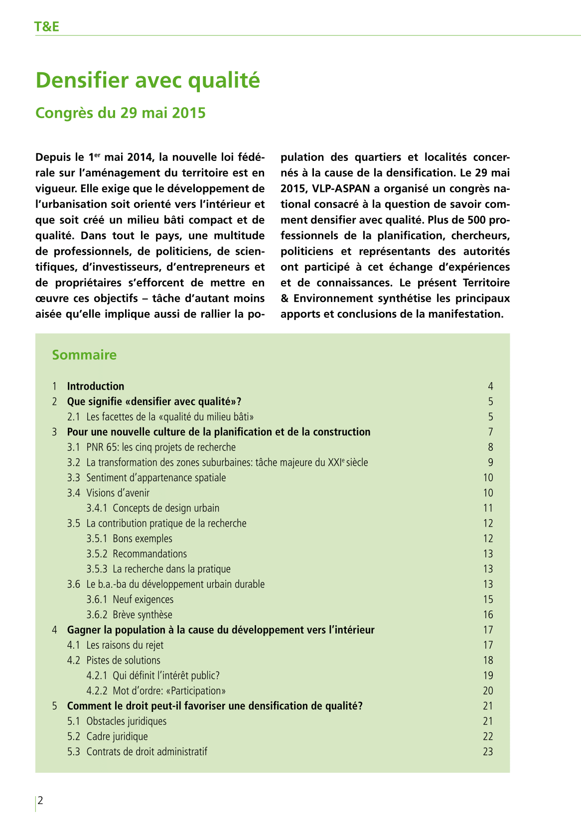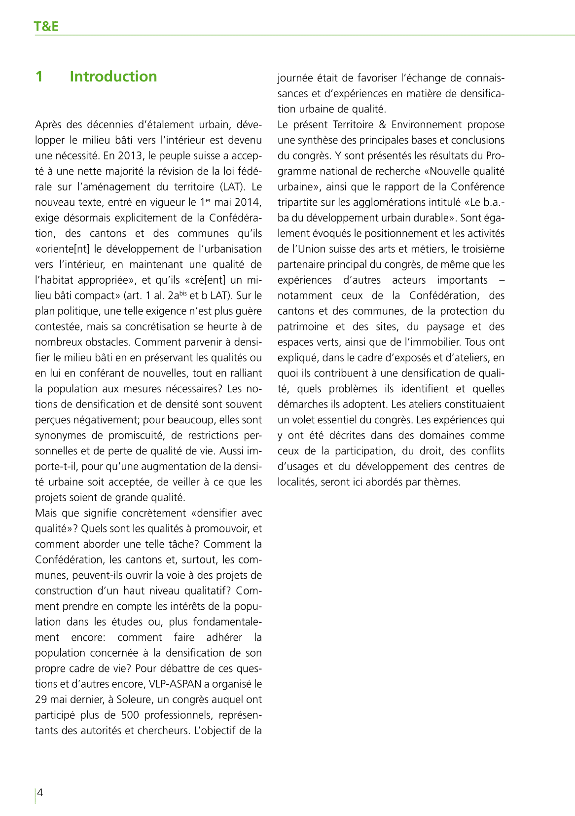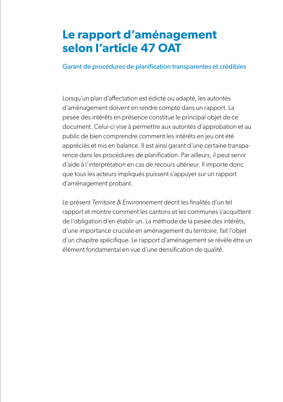 En plus d’une analyse de la situation actuelle, le présent dossier décrit les solutions qui peuvent être apportées à certains problèmes récurrents, ainsi que les outils et processus permettant de les mettre en œuvre. Ce Territoire & Environnement est une réédition actualisée de celui de 2016, qu’il complète par un certain nombre d’apports thématiques et d’exemples nouveaux.