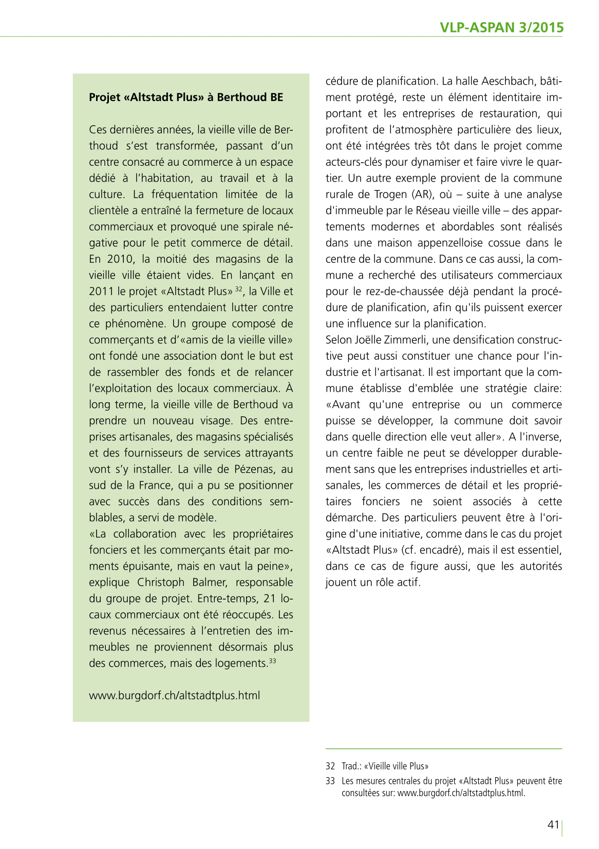 Un centre-ville ou un cœur de localité vivant est un lieu de rencontre qui invite à la flânerie autant qu’aux emplettes. Un lieu où il fait bon habiter et qui propose une certaine offre culturelle. Créer les conditions nécessaires n’est cependant pas chose aisée. Mutations structurelles, commerce en ligne, évolution des besoins en matière de logement: les défis sont de taille. Or, s’il n’existe pas de recettes, il est néanmoins possible d’agir. Les communes qui le souhaitent pourront s’appuyer sur l’activité déployée par Espace-Suisse dans plus de 70 centres régionaux de Suisse.