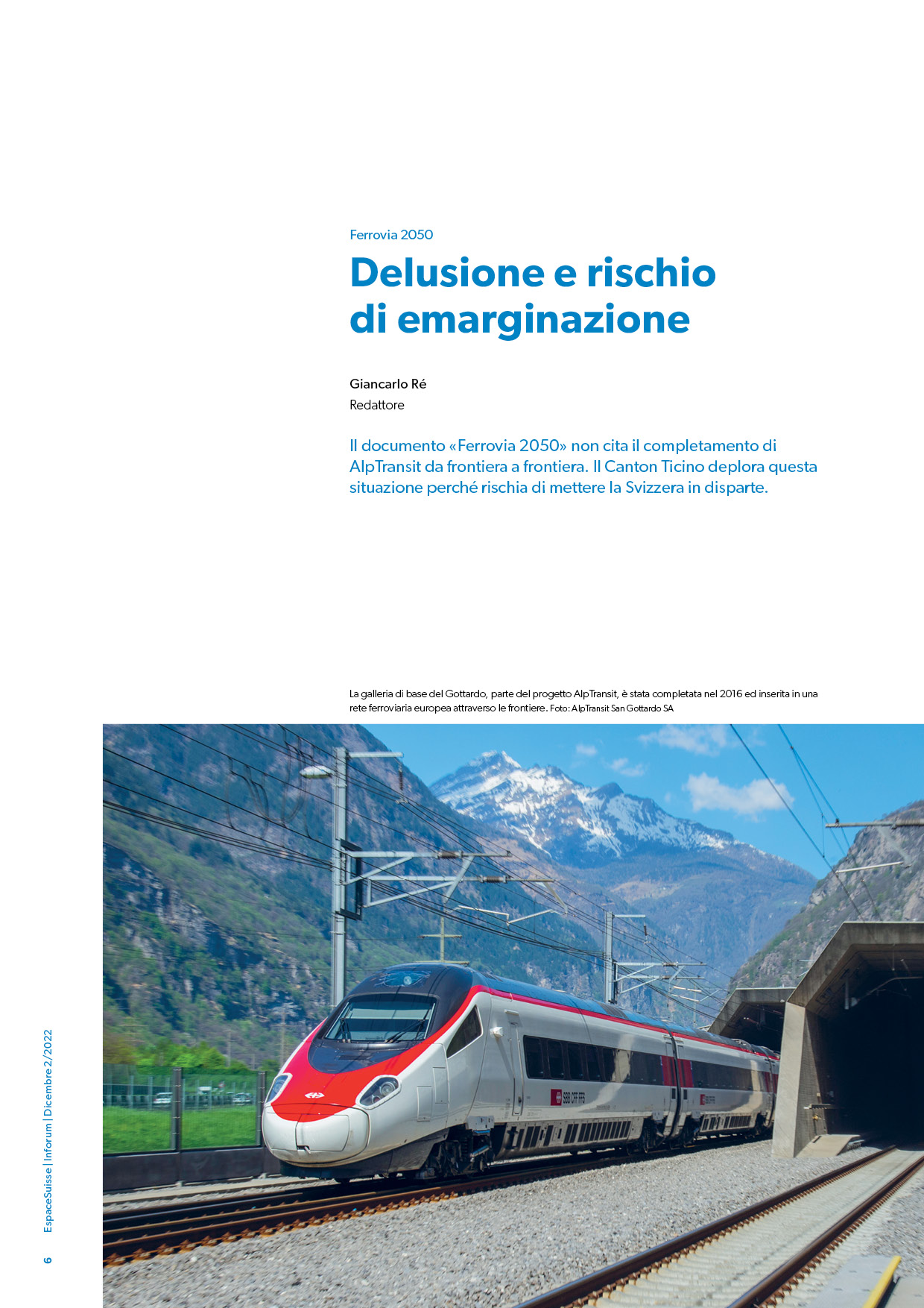 Ferrovia 2050: La politica ferroviaria federale si concentra sul traffico regionale e di agglomerato. Se AlpTransit non verrà completato rapidamente, la Svizzera potrà rimanere isolata.